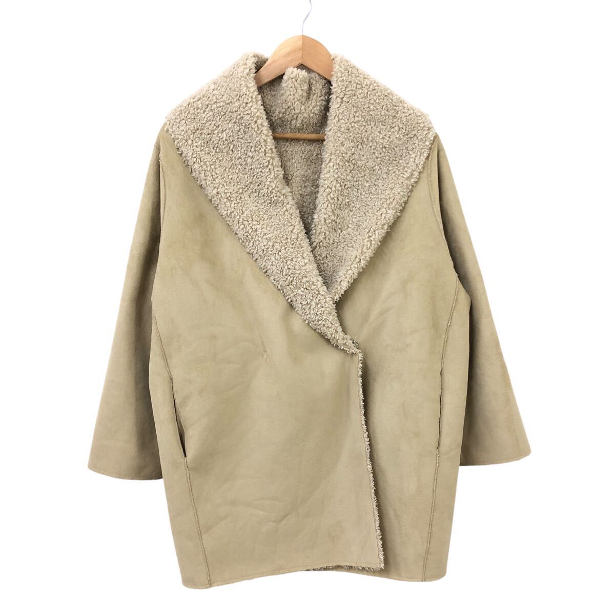 - 11m671-25 GALLARDAGALANTE NAVYガリャルダガランテ エコムートン ボア ショールカラー コート 上着 羽織り アウター ベージュ F