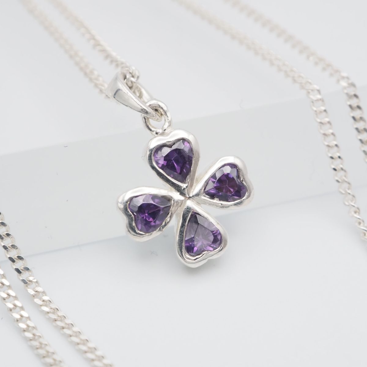 - H730 アメジスト SILVER925刻印 ペンダント ネックレス クローバー デザイン シルバー 2月誕生石