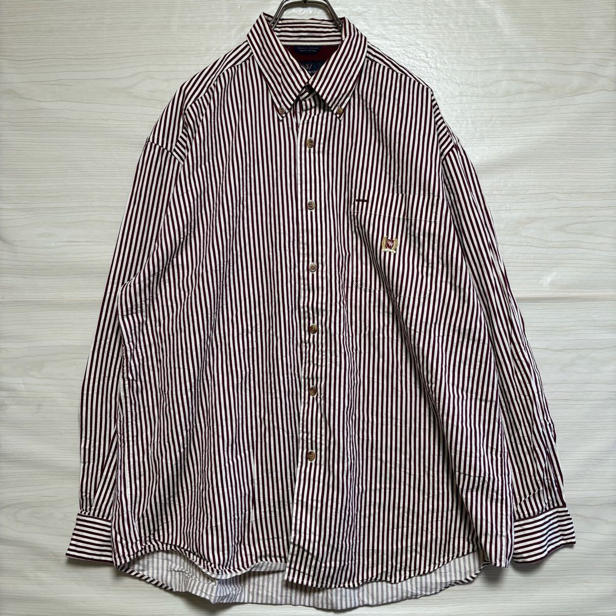 > WOODS&WOODS ウッズアンドウッズ 長袖シャツ ボタンダウン ストライプシャツ サイズL レッド 赤 コットン メンズ トップス(39)