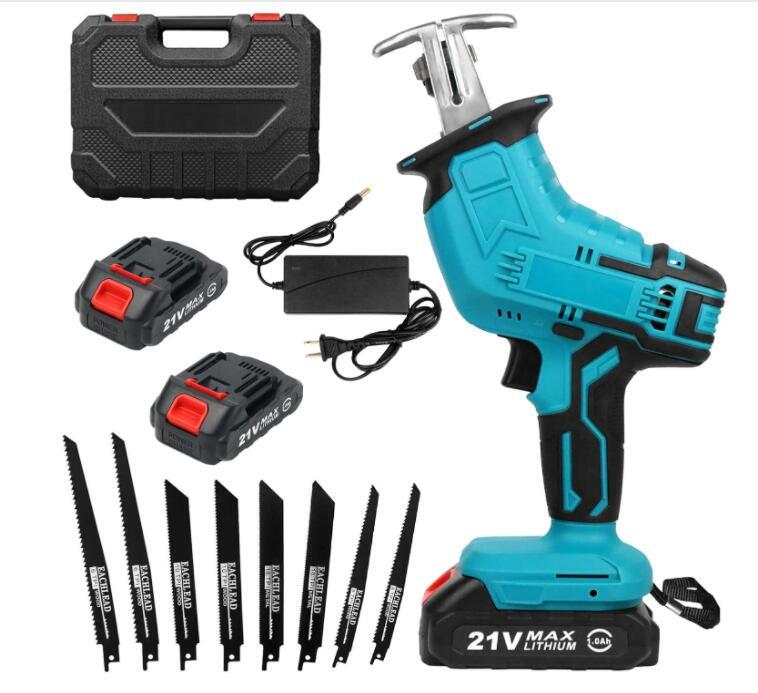 - 【バッテリー2個付き】レシプロソー 充電式 電動ノコギリ 小型 家庭用 電動レシプロソー コードレス 小型 ブレード4本 金工/木工切断