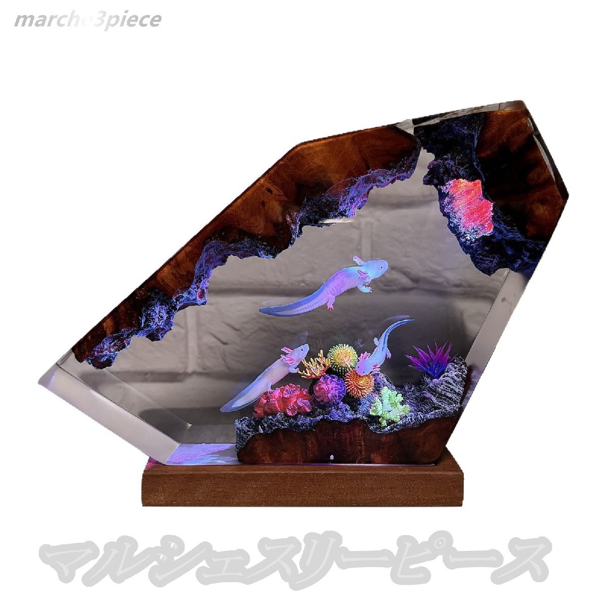 - かわいい ウーパールーパー レジンライト ふわふわ インテリア照明 おしゃれ ギフト に最適