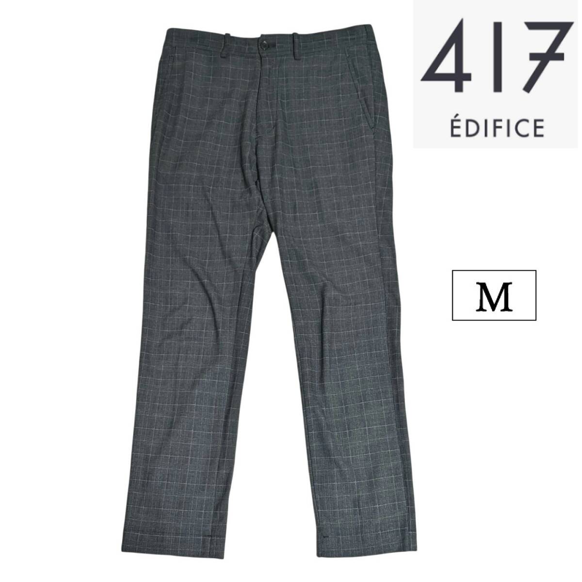 - 417 EDIFICE クールマックス スラックス スリムパンツ イージーパンツ グレー チェック スキニー エディフィス テーパード M