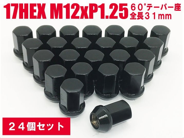 - ラグナット 袋ナット DK 24個入 17HEX M12xP1.25 60テーパー座 【ブラック】ニッサン NV350