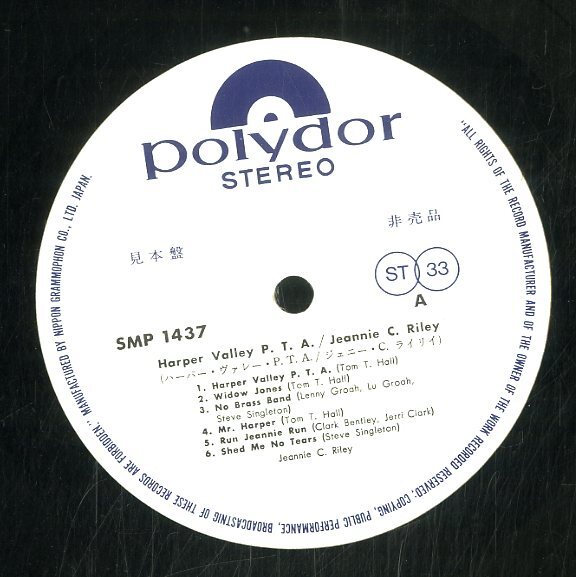 A00434224/LP/ジェニー・C・ライリー「ハーパー・ヴァレー・P.T.A.(1968年・SMP-1437・カントリー)」拍卖