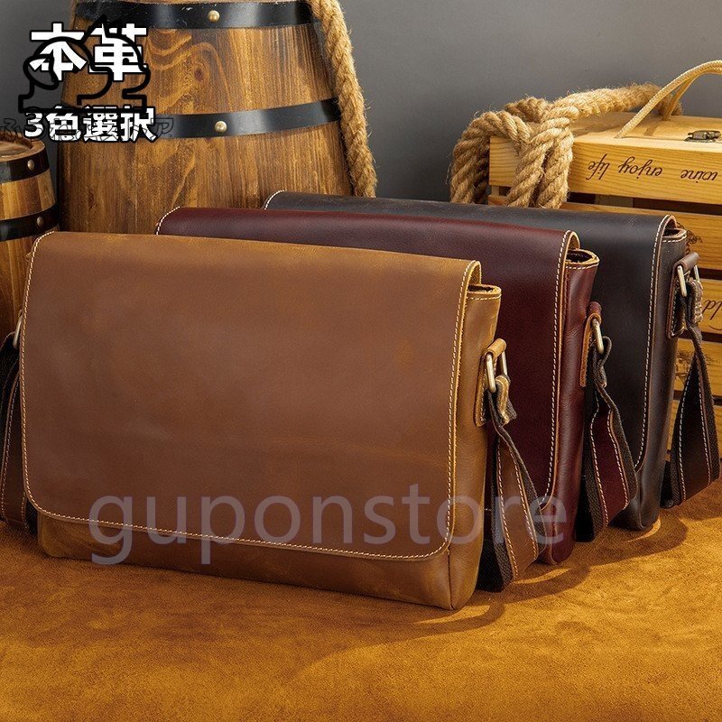 - 高品質 本革 メンズ ショルダーバッグ 斜め掛け ビジネスバッグ 7.9インチiPad対応 PC収納 大容量 肩掛け鞄 カジュアルバッグ 通勤 3色選択
