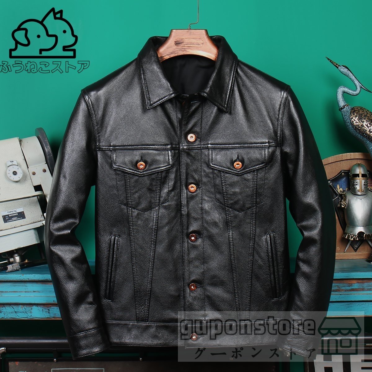- 新品 ライダースジャケット レザージャケット 牛革 バイクジャケット 定番 ヴィンテージ 本革 革ジャン メンズファッション M~4XL
