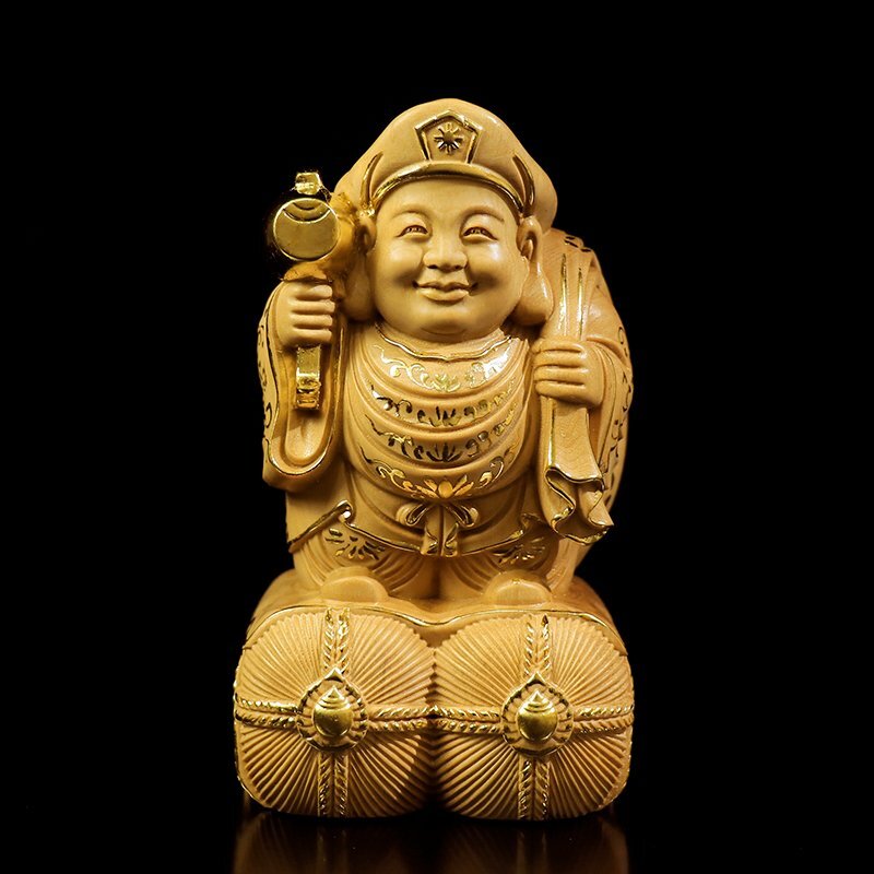 - 送料無料! 日本大黒天 七福神 仏門護法 神七福神 財神 仏像 奉納 仏護神仏 摩訶迦羅 細密彫刻24K真金貼付 木彫 小葉黄楊木zhzx281