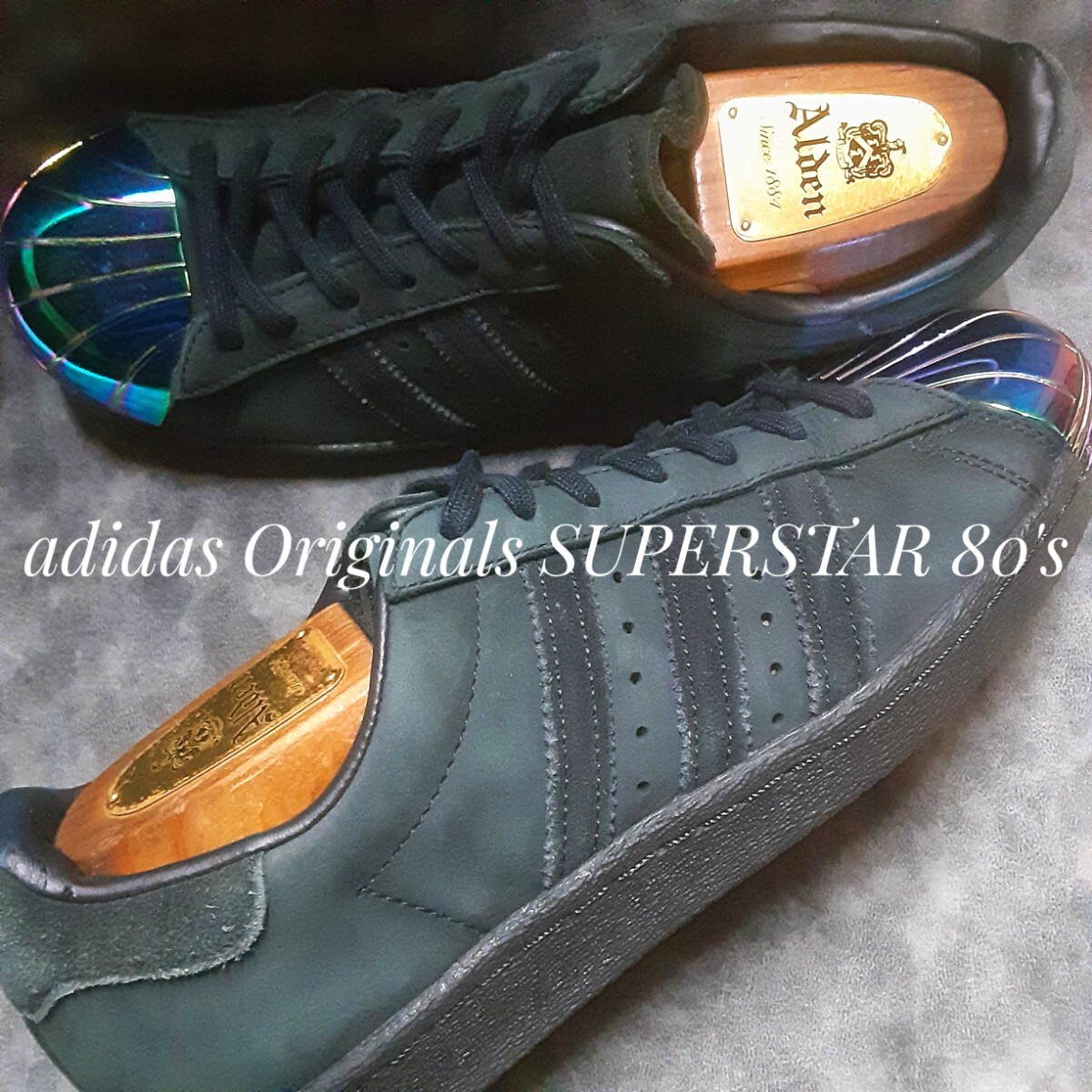 > 最値!定16500円!希少16年製!最上位コンビカウレザー×メタルトゥー!アディダス スーパースター 80's高級スニーカー!ブラック!墨黒 24.5cm