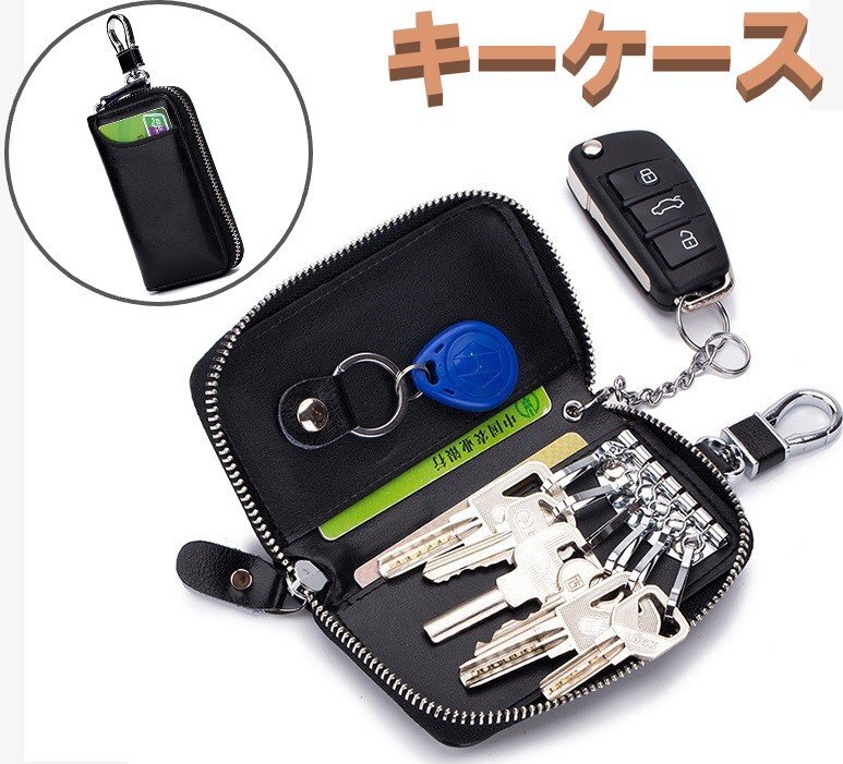 - キーケース 本革 ブラック レザー 鍵入れ 牛革 シンプル レザーキーケース キーリング キーフック n521