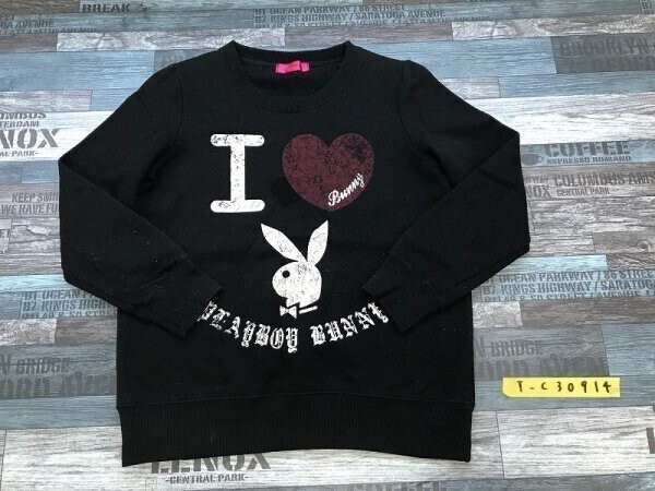> PLAYBOY プレイボーイ レディース かすれプリント トレーナー M 黒