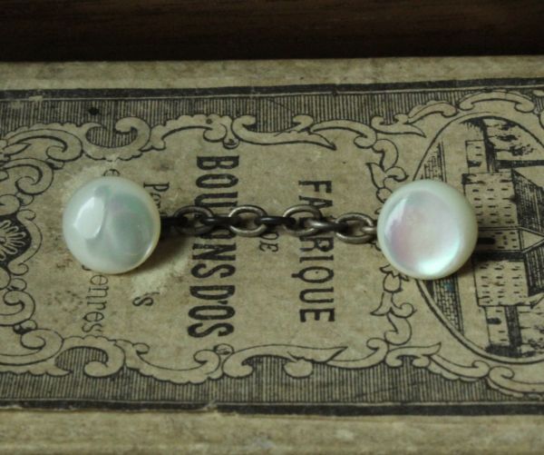 - 即決 未使用 美品 フランス アンティーク カラーチェーン マザーオブパール 襟ボタン ヴィンテージ シェル 貝