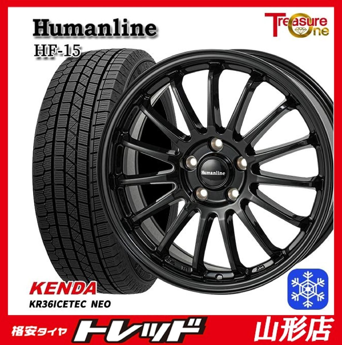 > 山形店 新品 冬タイヤアルミセット Humanline HF-15 17インチ 7.0j 5H114.3 +48 BK ケンダ KR36 215/50R17 2025年製 レヴォーグ
