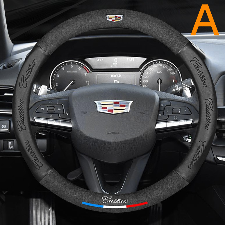 - ハンドルカバー キャデラック ステアリングホイールカバー 本革 内装品 高級 牛革 専車ロゴ 内装品パーツ 滑りにくい 文字付き Cadillac