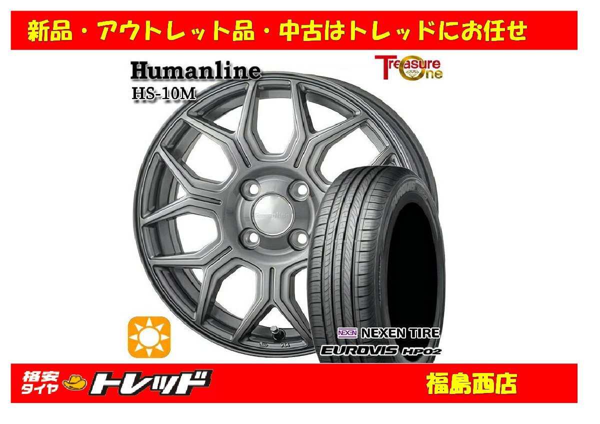 - 福島西 新品 サマータイヤホイール4本SET ヒューマンライン HS-10M 15インチ 5.5J 100/4H +50 & ロードストーン HP02 185/65R15 88H