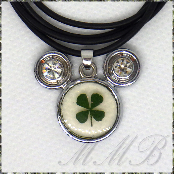 > [PENDANT NECKLACE] Real Four Leaf Clover 四葉のクローバー ミッキー スリーサークル CZ ペンダント ネックレス
