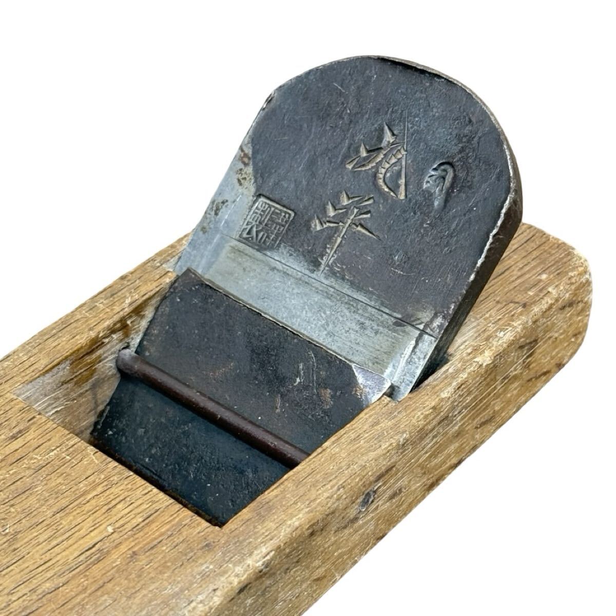 - 九平 謹製 名門 花押あり 鉋 かんな 刃物 大工道具 職人 本職 宮大工 在銘品 鍛冶師 鉋身 鉋刃 手工具 現状渡し 兵庫県姫路市発 A3