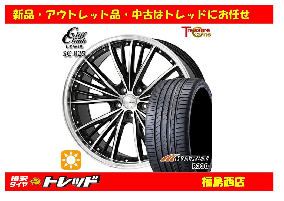 - 福島西 新品 サマータイヤホイール4本SET クリフクライム ルイス SC025 19インチ 8.0J 114/5H +35 & ウィンラン R330 245/40R19 98W XL