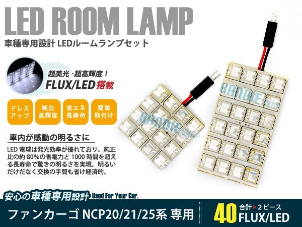 - P20 ファンカーゴ 2ピース 合計40ブロック発光 ルームランプ LED化 白発光 高輝度FLUXタイプ 一台分セット