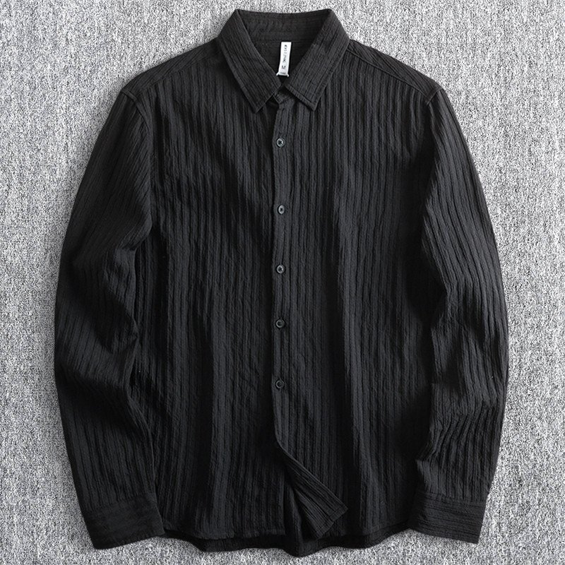 - 新品 楊柳 クレープ 綿 麻 長袖シャツ リネン コットン メンズ 形態安定 春夏 薄手 吸水速乾 無地 ボタンダウン パナマシャツ 黒 T6118-L