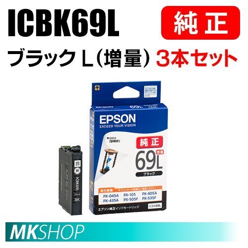 - EPSON 純正 インクカートリッジ ICBK69L ブラック 増量 3本セット(PX-045A/046A/047A/105/405A/435A/436A/437A/505F/535F/S505)