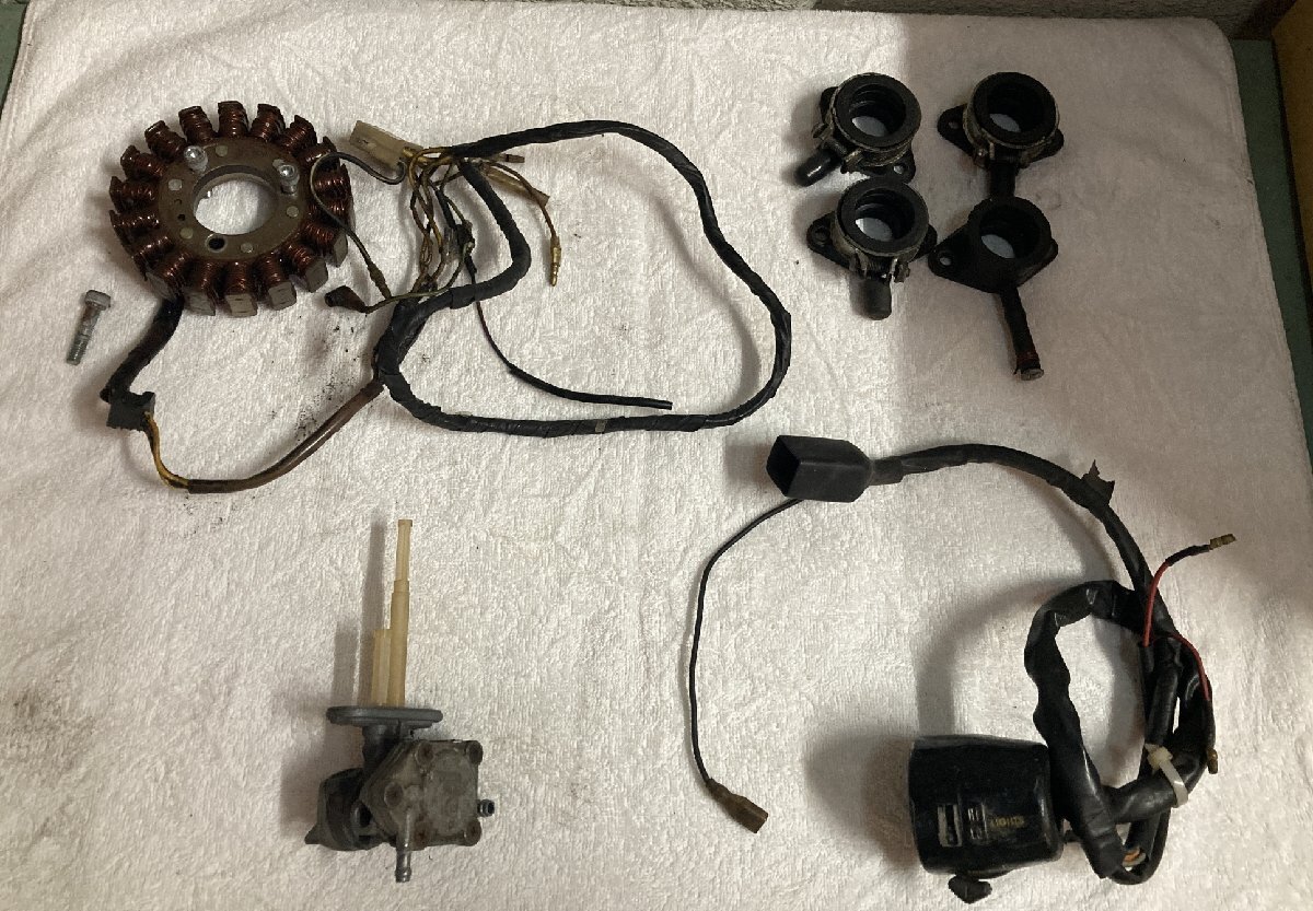 > 【中古 現状品】カワサキ Z550FX,Z500FXなど 純正パーツ 4点 ダイナモコイル,コック,インシュレーターゴム,ハンドルスイッチ/bk-A224
