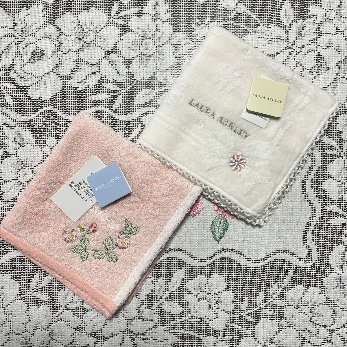 - 送料無料 ローラアシュレイ ウェッジウッド タオルハンカチ2枚セット♪♪ ブランドハンカチ ワイルドストロベリー 大人可愛い