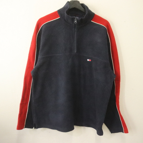 > J1 2001年製ビンテージ トミーフィルフィガー ハーフジップ フリーストップス■00s 表記Lサイズ ネイビー 刺繍 アメカジ ストリート 古着