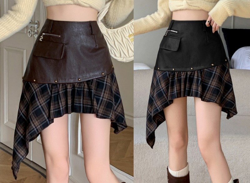 - スカート アシンメトリー フリル 切り替え スリム 着痩せ L ブラック