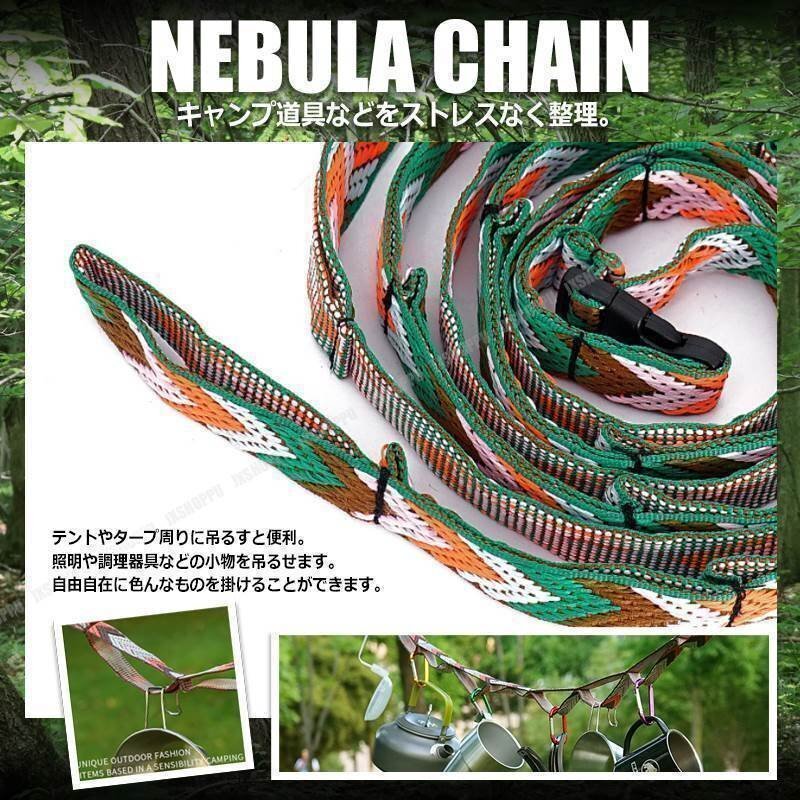 - 送料0円 かわいいキャンプ用品 ネビュラチェーン [グリーン] 収納袋 テント タープ ハンギングチェーン 紐 ひも デイジー ロープ 迷彩