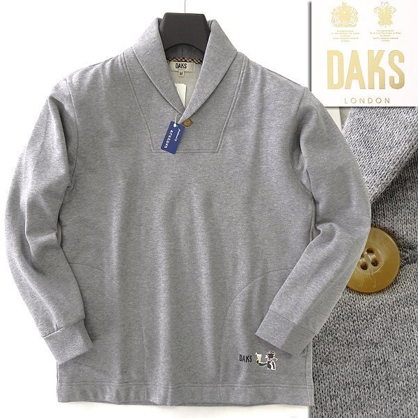 - 新品 ダックス 裏起毛 ショールカラー スウェット プルオーバー M 灰 【I46799】 日本製 DAKS LONDON 秋冬 メンズ プリント トレーナー