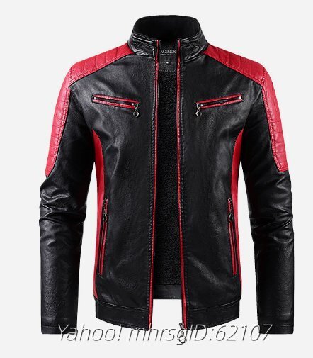 - メンズ PUレザー ジャケット 秋冬 大サイズ 韓国風 スリム フリース裏起毛 カジュアル アウター(S-5XL)