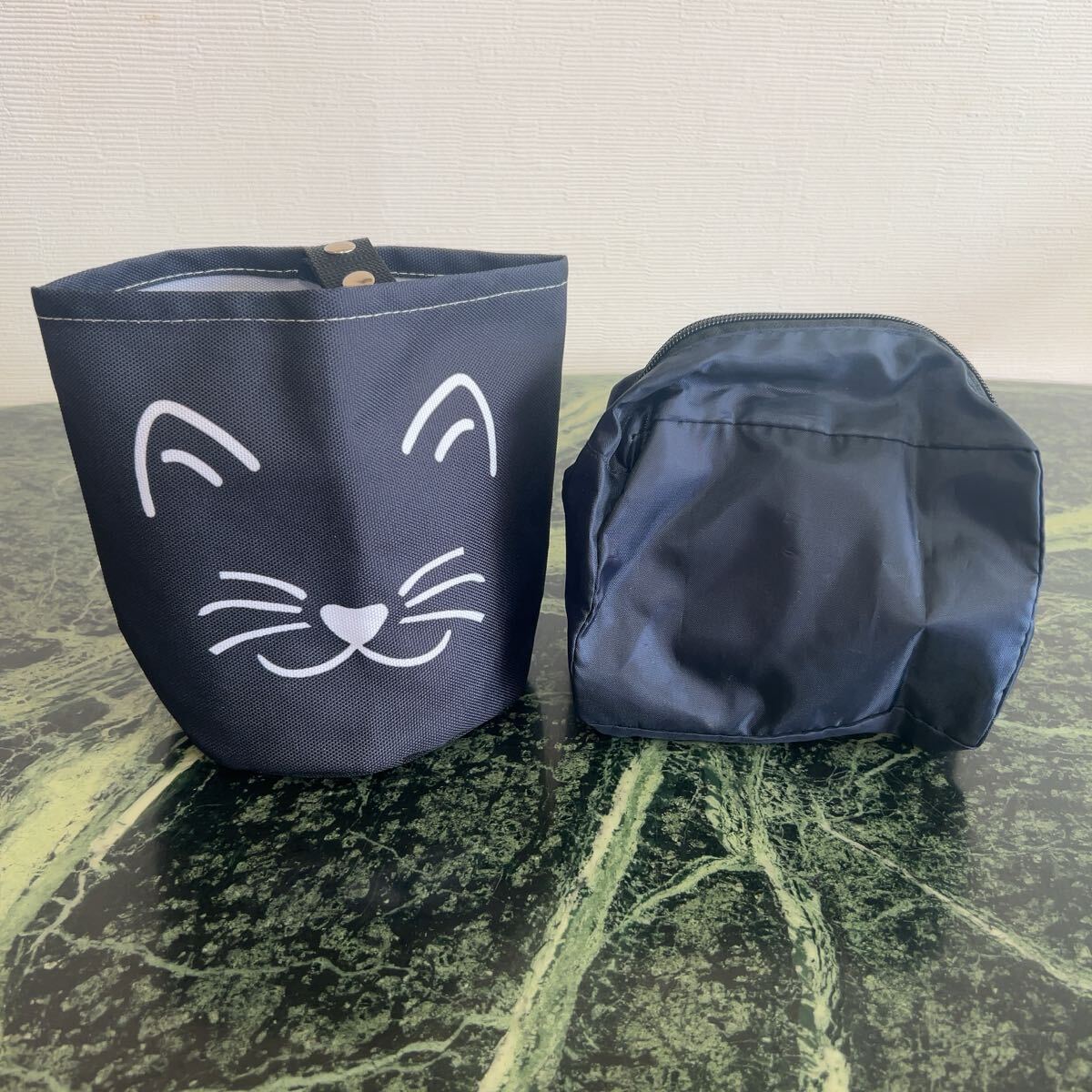 - 【美品】黒猫ポーチ★小物入れ ナイロン フックポーチ ネコ