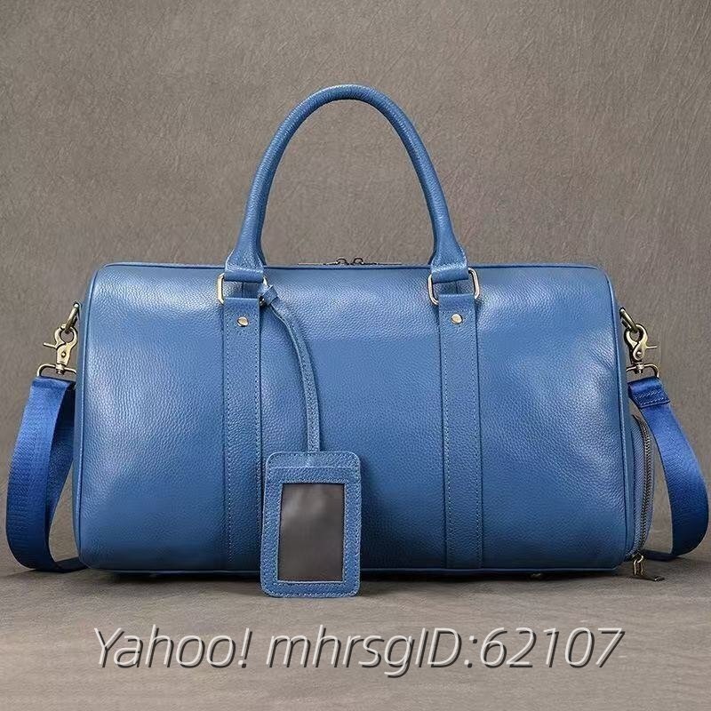 - ボストンバッグ 本革 メンズ 大容量 靴入れ付き 底鋲付き レザー 機内持ち込み 旅行バッグ 自立 牛革 旅行鞄 ゴルフバッグ出張▲ブルー