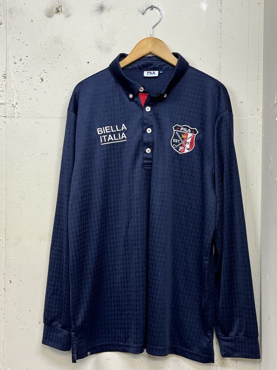 - 美品 FILA GOLF フィラゴルフ 速乾ストレッチ 長袖ポロシャツ 紺黒 メンズ 4L 3XL 総柄 千鳥格子 ゴルフウエア