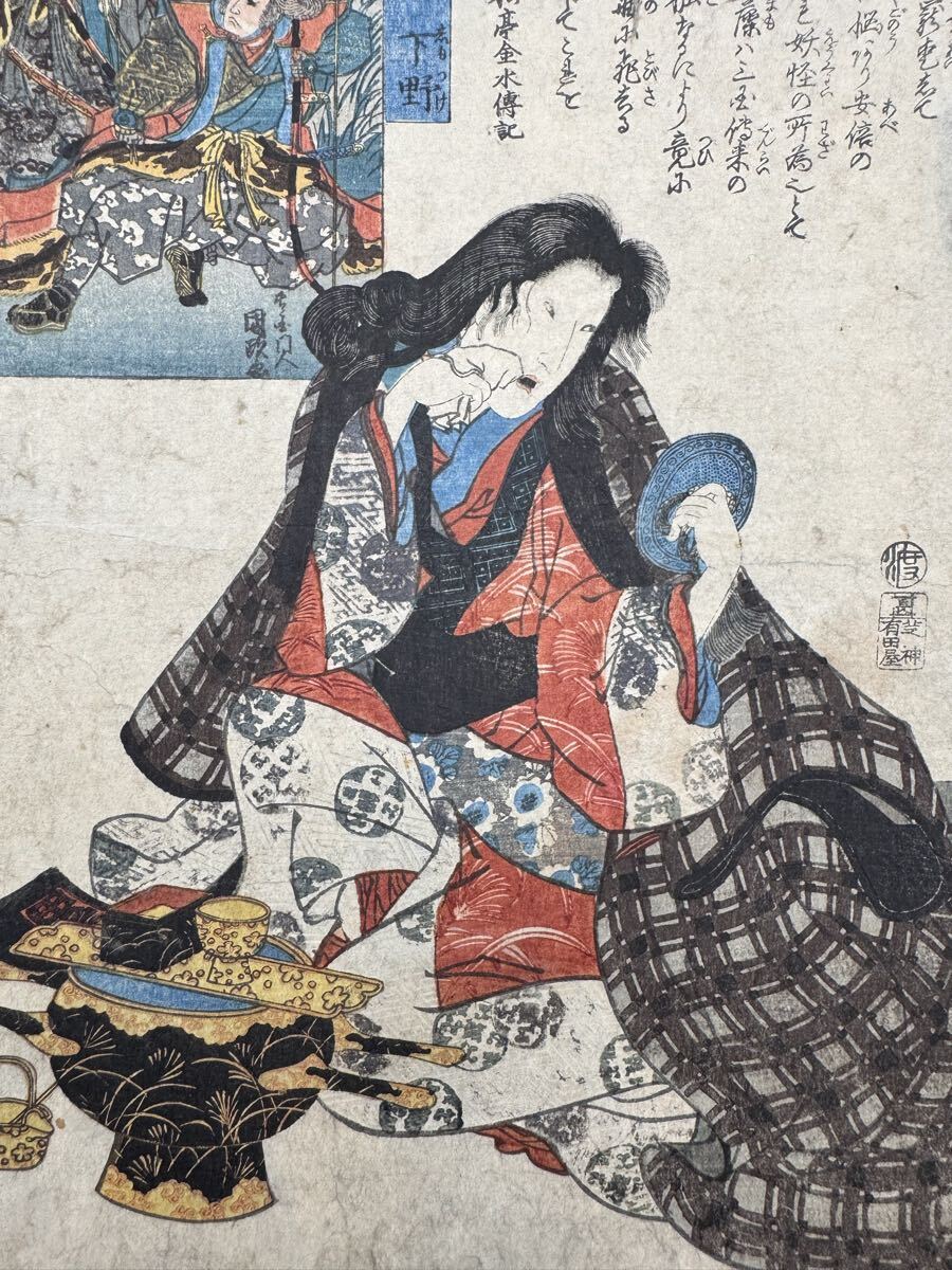 - 【真作】妖狐!本物浮世絵木版画 三代歌川豊国「大日本六十餘州之内 下野 玉藻前」江戸期 美人図 錦絵 大判 保存良い