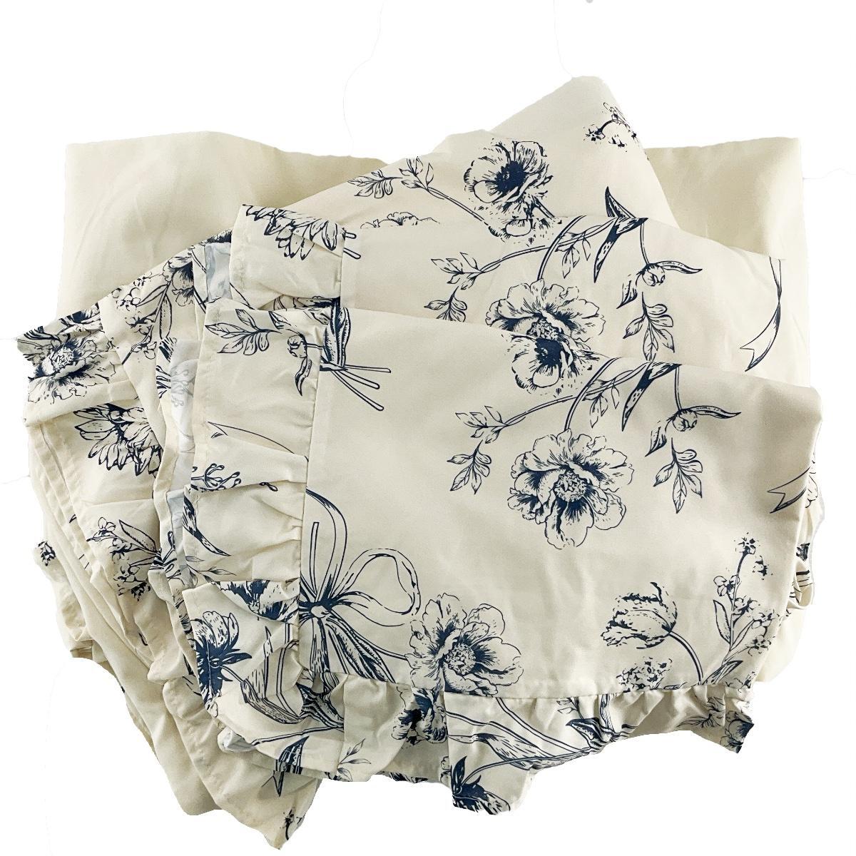 - 布団カバーセット 4点セット 大人可愛い ダブルサイズ 花柄フリル アンティークブルー