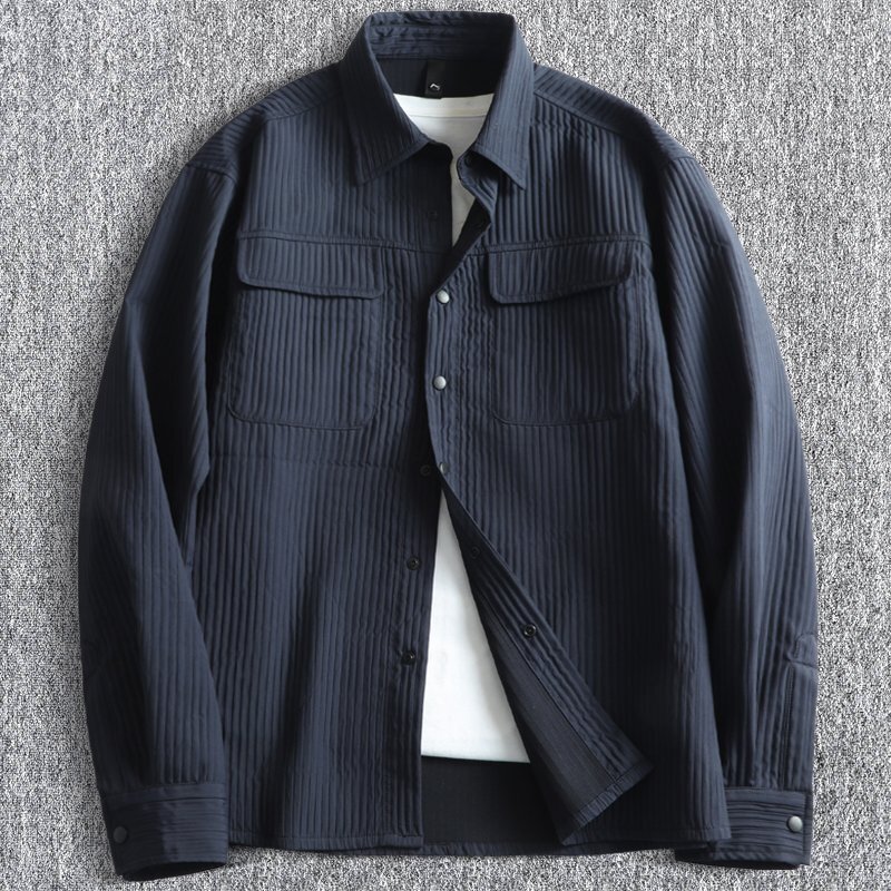 - 新品 シアサッカー テクスチャー ジャンパー メンズ 春 夏 秋 シャツ襟 ジャケット 軽量 通気性 薄手 ゆったり ブルゾン 濃紺 T5025-3XL