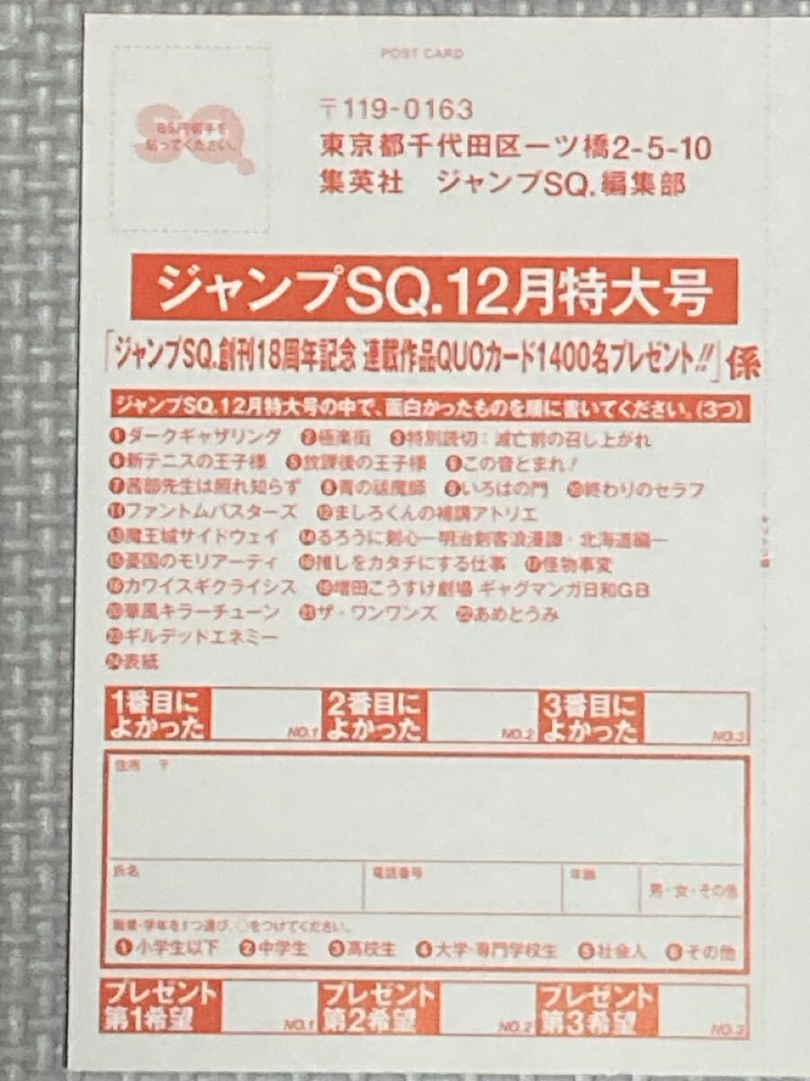 - 2枚まで ジャンプスクエア12月号 プレゼント応募ハガキ ジャンプSQ