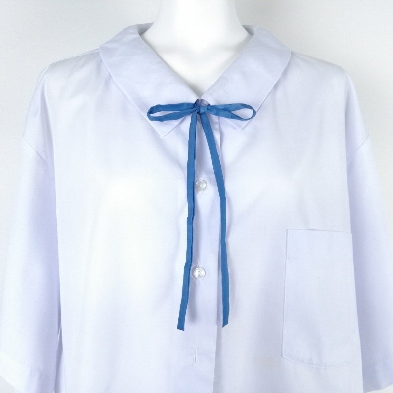 - 【1本】スクール 紐タイ 棒タイ 制服 無地 ナイロン 水色 中古 TAI-1-LB VI