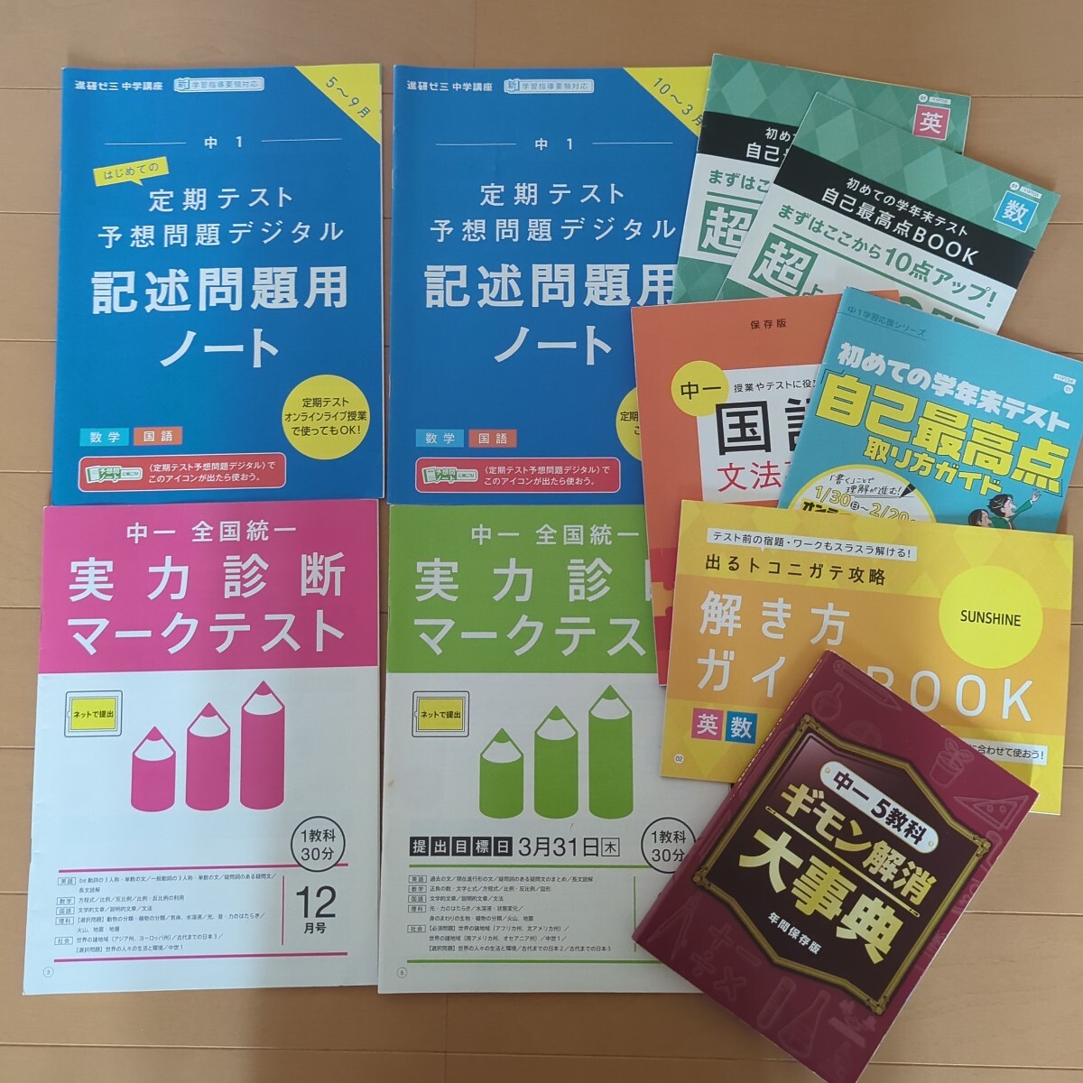 > 中古☆進研ゼミ中学講座10冊☆1年生☆charenge☆ギモン解消大事典・演習・練習問題・ノート☆英語・数学・国語・理科・社会☆送料込み