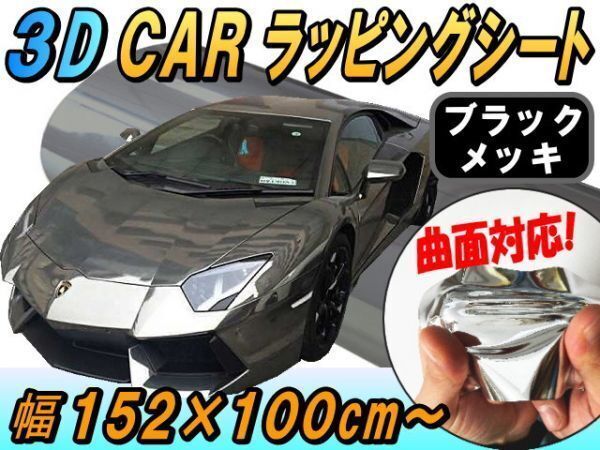 > メッキラッピングシート (大) 黒 幅152cm×100cm カーボディ メタル調フィルム クローム メッキ 鏡面ミラー調 伸縮ビニール ブラック1m 7