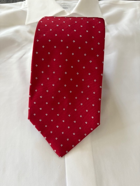 - LUIGI BORRELLIボレリのシルクタイ 情熱の赤に小さな小紋刺繍
