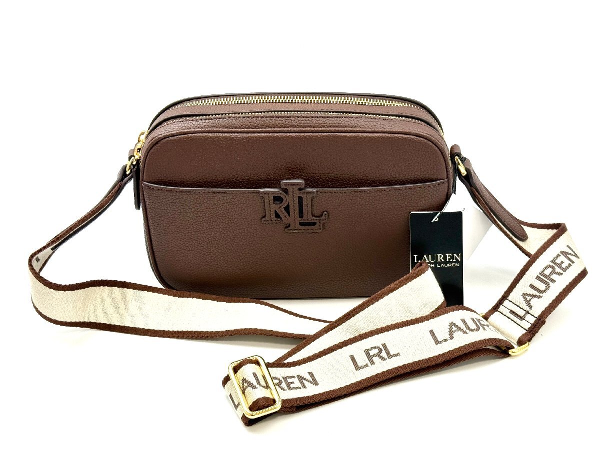 - A) RALPH LAUREN LRL ラルフローレン 牛革 レザー ブラウン系 Wファスナー ショルダーバッグ タグ付き ブランド アウトレット 未使用品