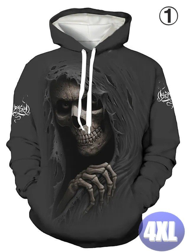 - フード付き ドクロパーカー カラー1 4XL トレーナー アウター 防寒 n718
