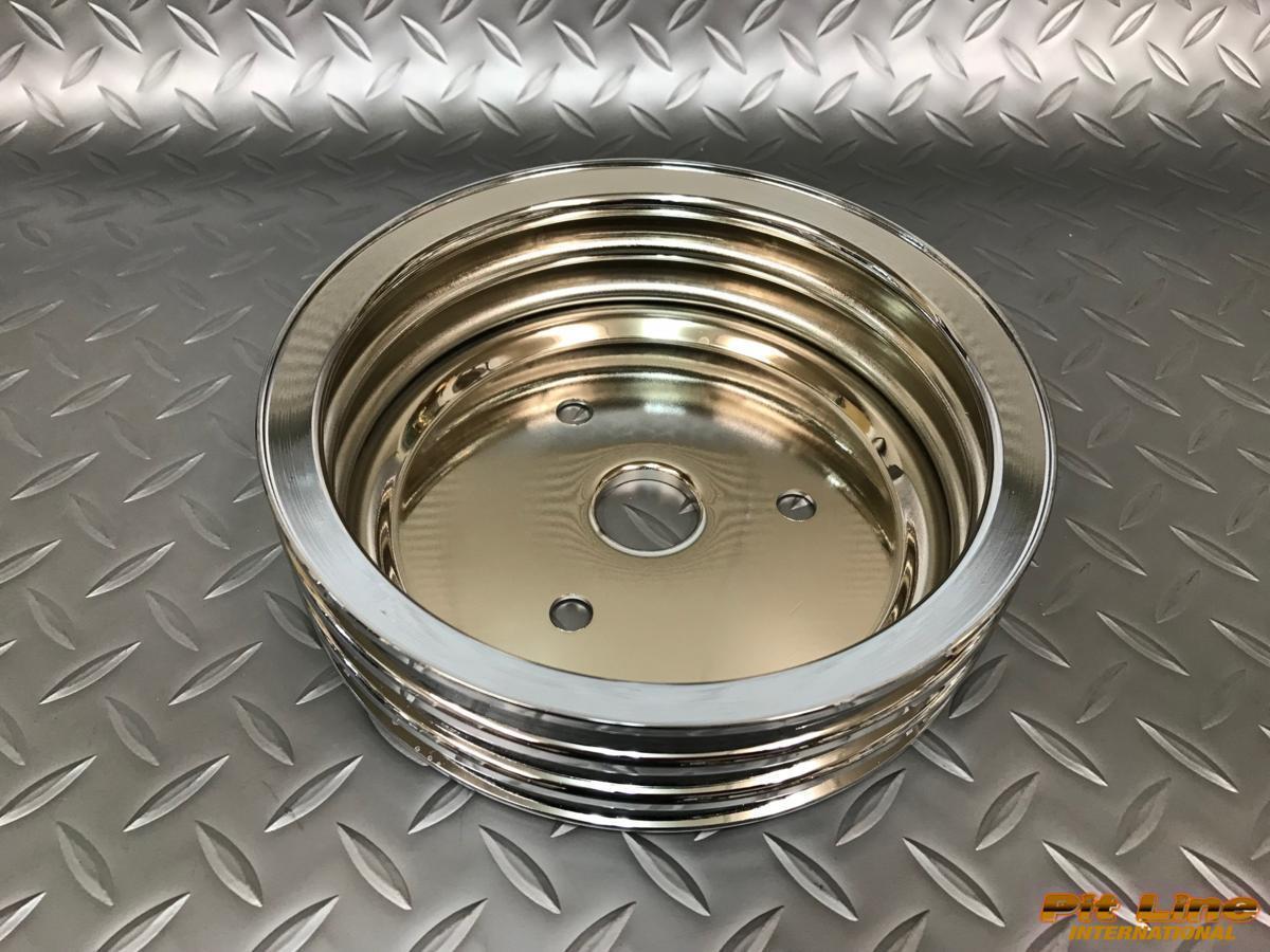 - クロームクランクプーリー 3グルーブ SBC/ショートW/P用 インパラ、カプリス、シボレー