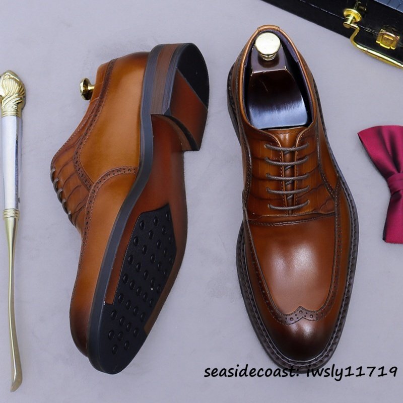 - 極美品◆ビジネスシューズ メンズ 本革 イギリス風 レザーシューズ 職人手作り 高級牛革 革靴 紳士靴 冠婚葬祭 フォーマル ブラウン 24.5cm