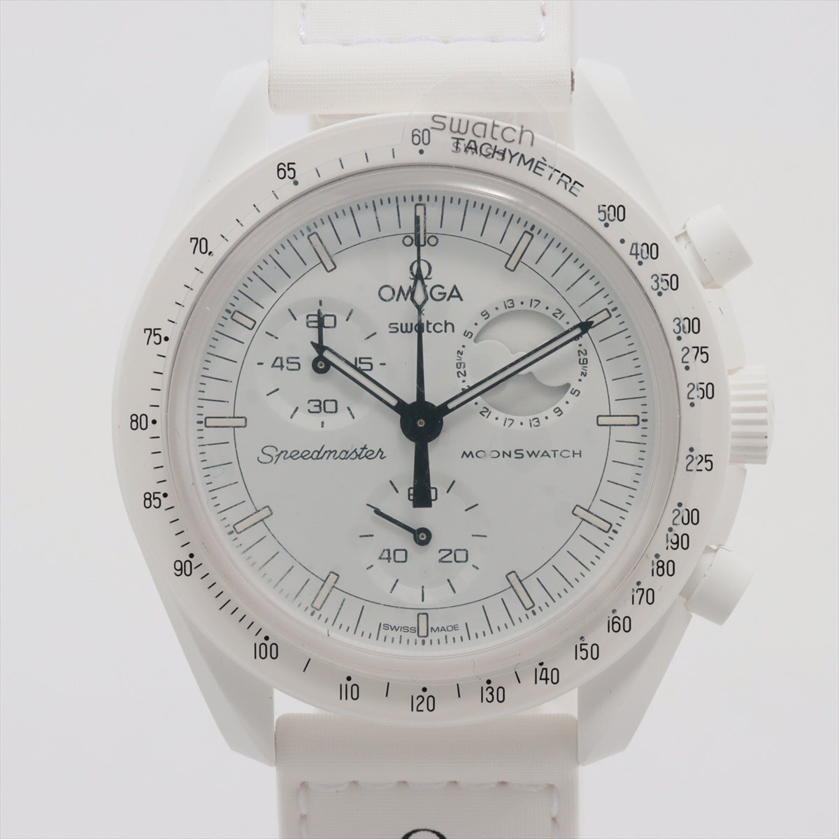 > ■ 1円 ~ 正規 現行 美品 ■ オメガ × スウォッチ OMEGA × swatch ミッション トゥ ザ ムーンフェイズ 白 スヌーピー ムーンスウォッチ