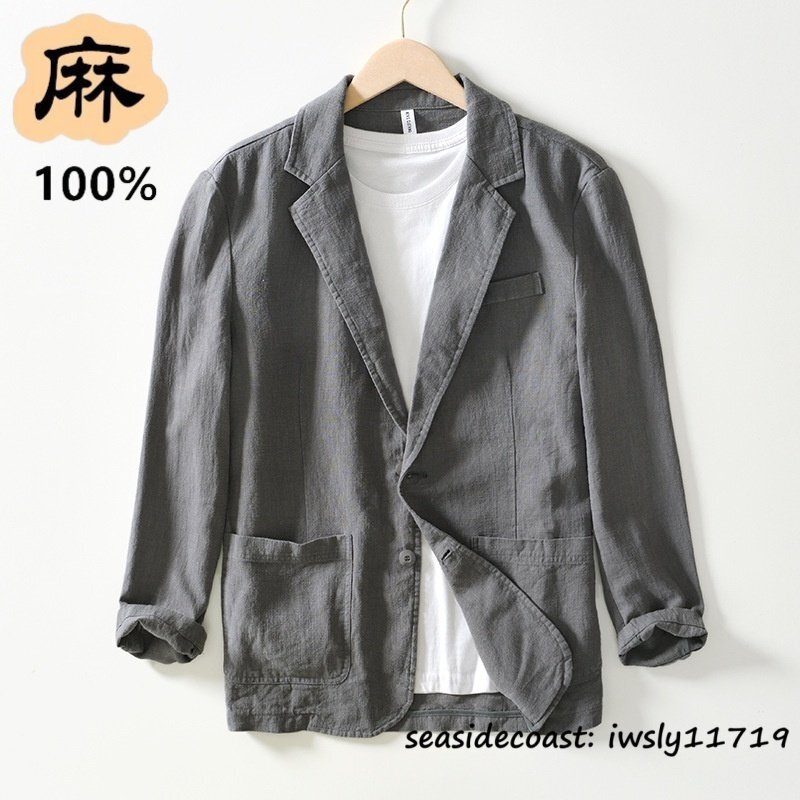 - 超希少*テーラードジャケット メンズ 春夏秋 リネンジャケット 麻100% 無地 清涼感 通気性 ブレザー 麻スーツ 紳士服 鮮やか グレー 4XL