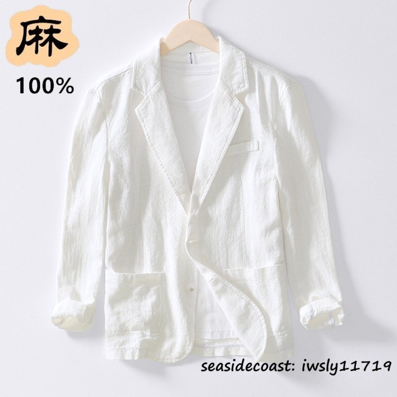 - 超希少*テーラードジャケット メンズ 春夏秋 リネンジャケット 麻100% 無地 清涼感 通気性 ブレザー 麻スーツ 紳士服 鮮やか ホワイト XL