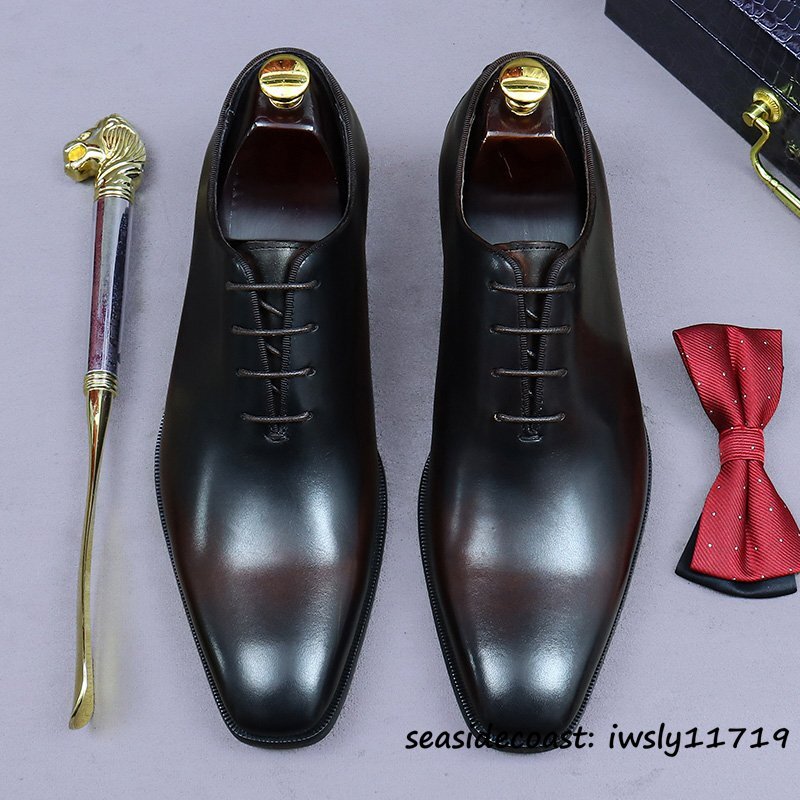 - 定価11万★最高級 本革 ビジネスシューズ メンズ イギリス風 職人手作り レザーシューズ 牛革 革靴 紳士靴 冠婚葬祭 新品 珈琲色 24.5cm